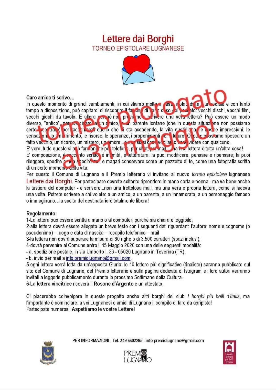 In allegato il regolamento con proroga della scadenza al 31 Maggio.