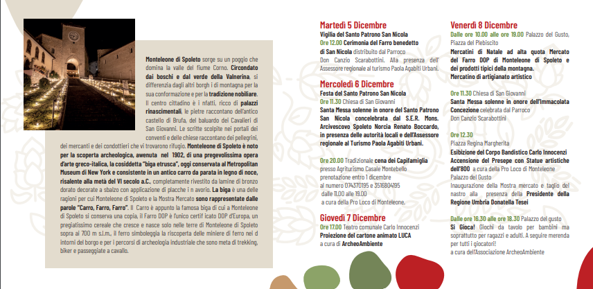 Mercatini di Natale ad alta quota Mercato del Farro DOP di Monteleone di Spoleto e dei prodotti tipici della montagna.