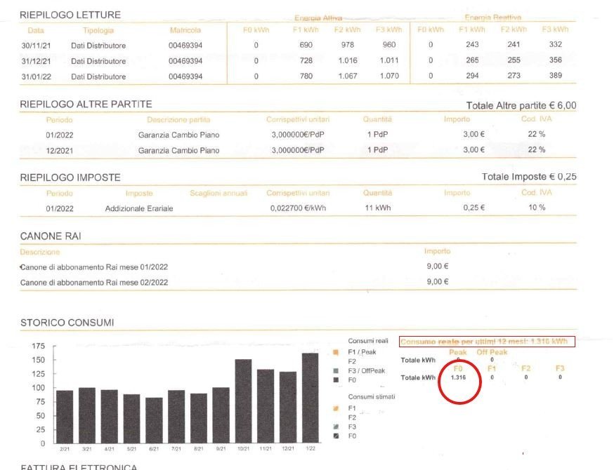 - di una bolletta (copia dell’ultima fattura per la fornitura di energia completa del consumo degli ultimi 12 mesi e del consumo medio annuo) - (in allegato due immagini indicative del dato relativo al consumo medio annuo).