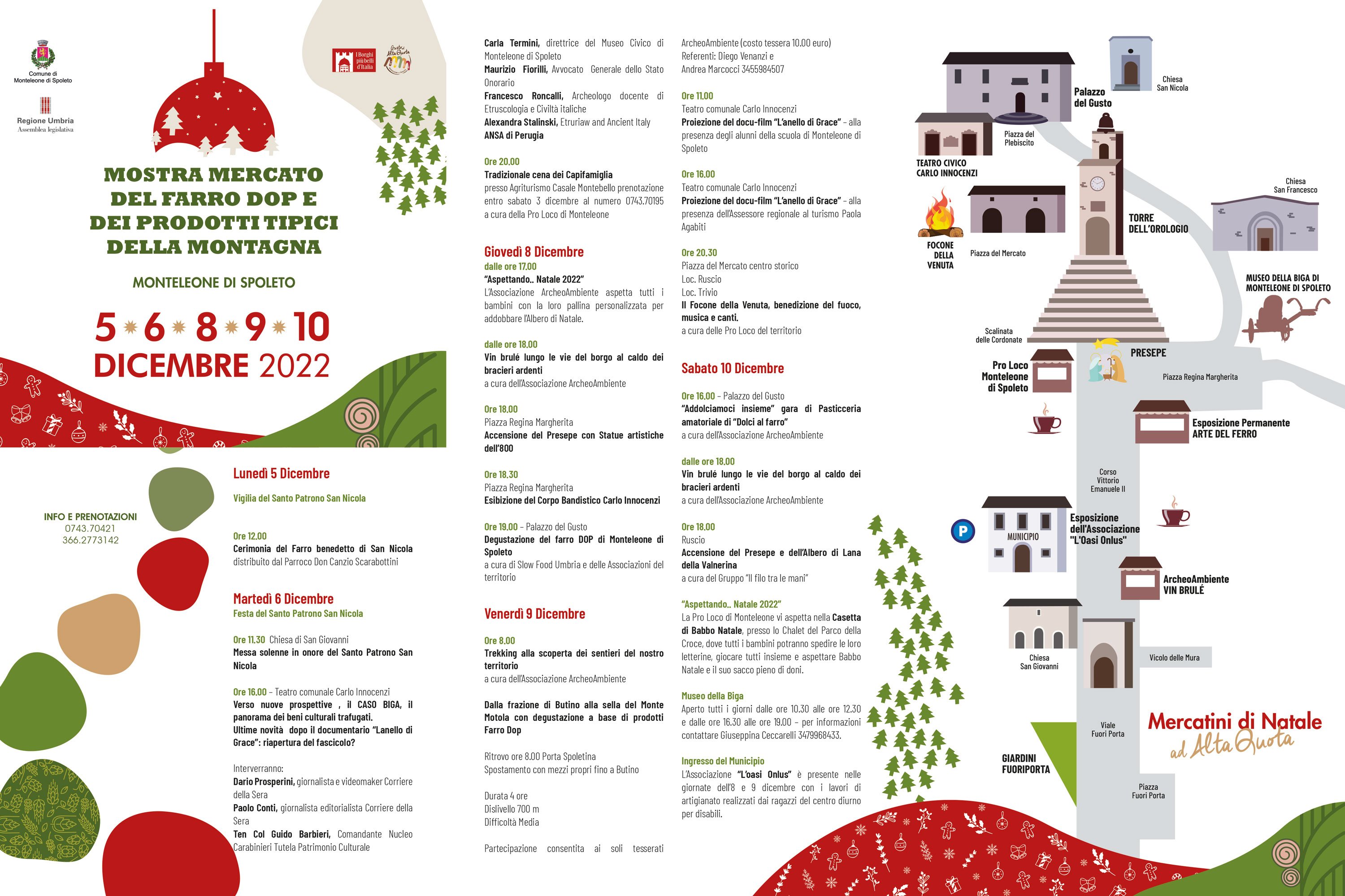 (Cittadino e Provincia) Monteleone di Spoleto 2 dicembre ‘22 – Si terra nei giorni 5,6,8,9 e 10 dicembre a Monteleone di Spoleto “La Mostra mercato del farro Dop e dei prodotti tipici della montagna”.