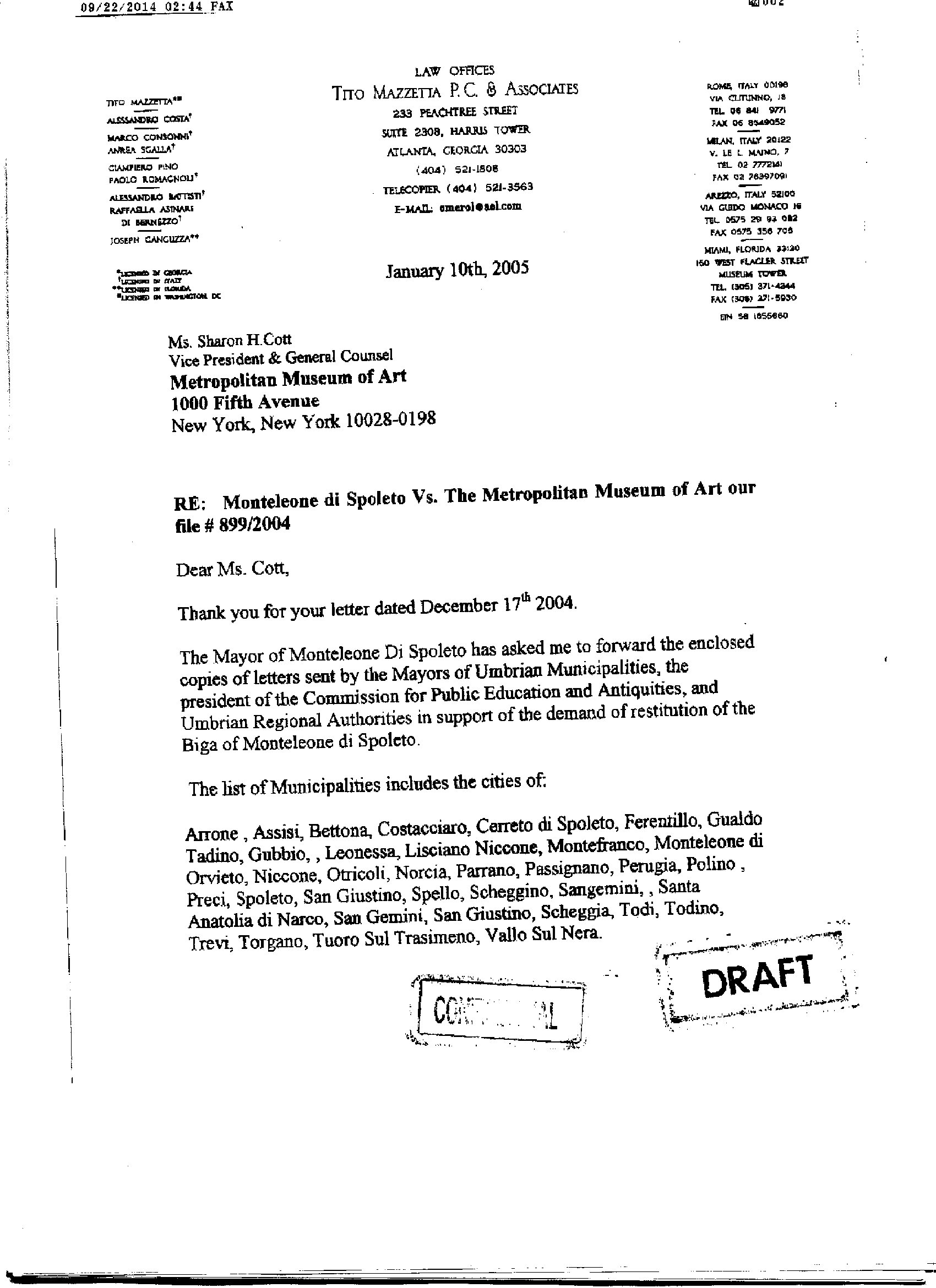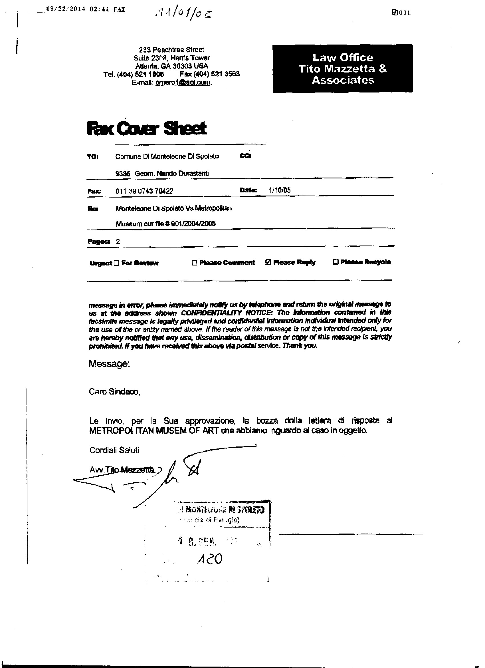 10/01/2005 - Bozza della risposta dell'Avv. Tito Mazzetta a quella del