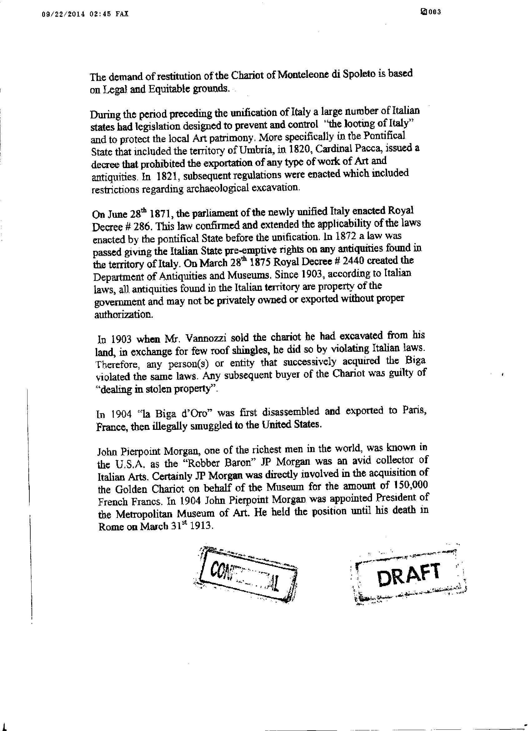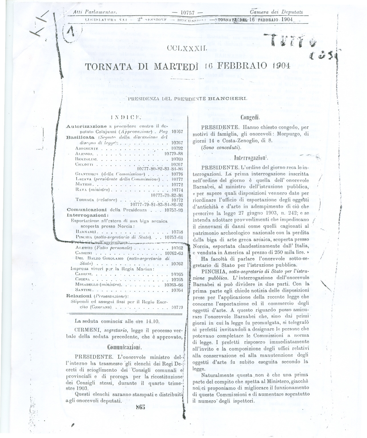 01/03/2005 - Parere espresso dalla Commissione Interministeriale per il Recupero delle Opere d'Arte.