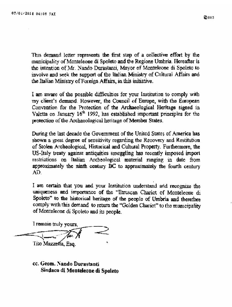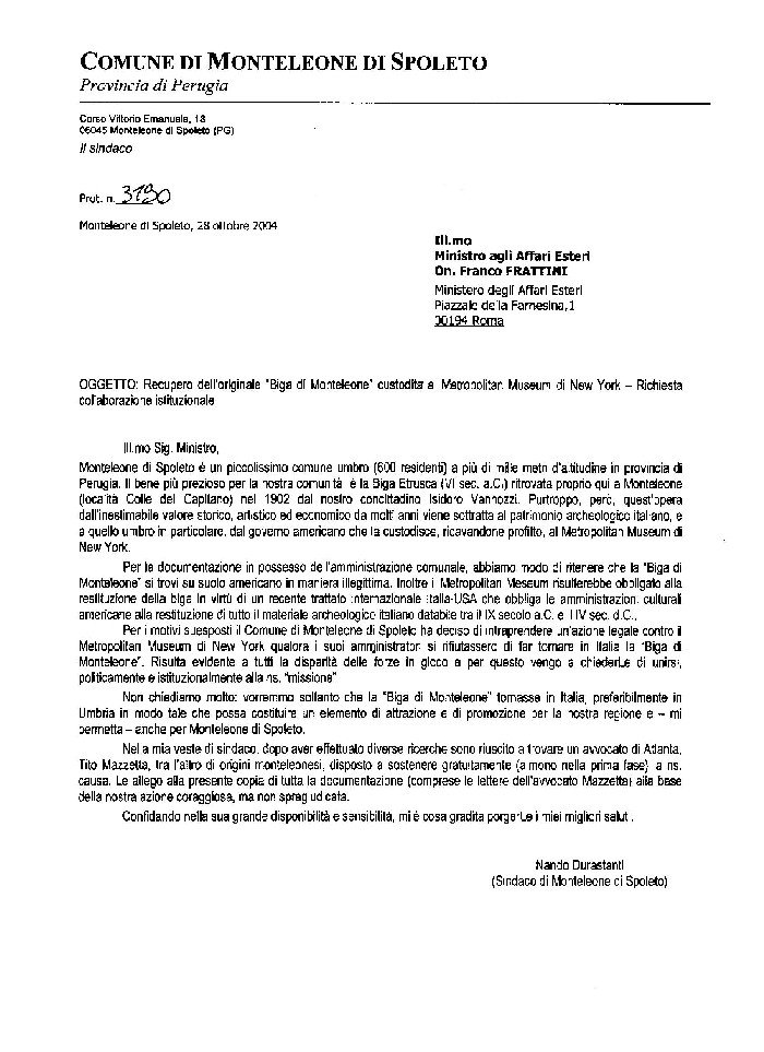 13/04/2007 Lettera del Capo di Gabinetto del Ministero per i Beni e le Attività culturali, avv. Gabriella Palmieri, al sindaco Durastanti. pag. 1 / pag. 2